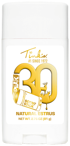 The no-mess format of Tink’s® Scent Sticks combines the legendary Tink’s scents with a wax-base formula that makes application of America’s favorite attractants cleaner and simpler than ever. Just dial and apply to almost any surface. The easy-to-apply dial-up style applicator makes doping up a hunting spot with #69, #1 Doe-P or Peak30 Peak Heat Premium Doe simple and effective. The powerful, and long-lasting formulas endure a multitude of weather conditions including rain and snow! Tink’s® Scent Sticks are designed to be applied liberally on many surfaces including boots, limbs and leaves, sticks, ladder sticks/stands, fabric, and more.